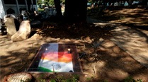 The grave holds a painting of the tricolour, with Husain’s portrait at the centre.