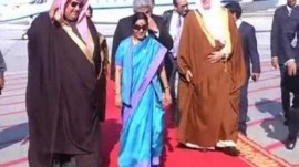 Manama, Jan 23 (ANI): External Affairs Minister Sushma Swaraj on Saturday called on King of Bahrain Hamad bin Isa Al Khalifa in Manama. Earlier today, she had also visited India Pavilion at Bahrain Air Show, where she was given a briefing on the Tejas LCA being showcased at Air Show. Swaraj arrived in Bahrain's capital Manama earlier today on a two-day visit. She is in Bahrain for the first ministerial meeting of the India-Arab League Cooperation Forum to deepen the country's ties with the 22-member grouping.