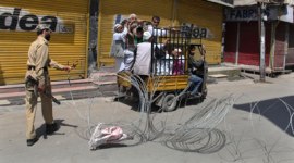 Srinagar, Feb 15 (ANI): Curfew was imposed in five police station areas of the Srinagar city after separatists called for a shutdown. In Srinagar, shops and government installations remained closed as a precautionary measure, while roads wore a deserted look as most people remained indoors. The armed security personnel patrolled residential and market areas to prevent any untoward incident.