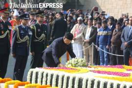 As India remembers Mahatama Gandhi on his birth anniversary, President Ram Nath Kovind, Vice President Venkaiah Naidu and Prime Minister Narendra Modi paid their tributes to the Father of the Nation at his Samadhi at Rajghat in New Delhi on Monday morning.