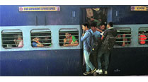 People travel cramped in trains to make it home for Chhath puja.
