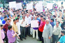 The shopkeepers led by Mahavir Mandir Trust members held a protest from from Gur Mandi to Girja Ghar Chowk.
