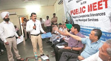 Municipal commissioner B Purushartha, along with other officials, heard the grievances of the residents. Around 90 complaints were registered.