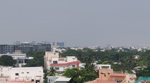 Smog could be visible as early as 6 in the morning in Chennai. Express Photo: Shivani Ramakrishnan