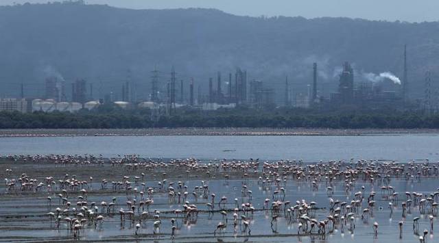Flamingos at Sewri in Mumbai on Monday. (Express photo by Nirmal Harindran)