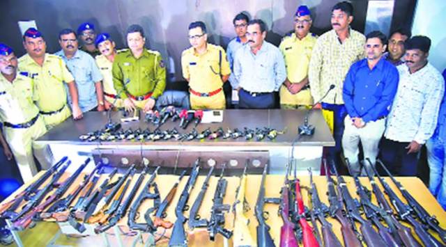 Three persons were arrested by the rural police in Nashik city on Thursday for allegedly robbing a gun showroom in Uttar Pradesh. A police team recovered 25 rifles, 17 revolvers, two country-made pistols and 4,136 rounds of bullets from the trio. The arrested persons have been identified as Nagesh Rajendra Bansode (23), Salman Amanulla Khan (19) and Badruzzaman Akbar Badshah, alias Sumit (27). All three are history-sheeters and have cases of theft, assault and robbery registered at several police stations in the city.