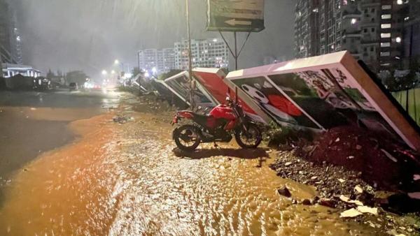 Hoardings collapsed during the heavy rains on Monday night near Elina Living at NIBM annex. (Express photo by Arul Horizon)