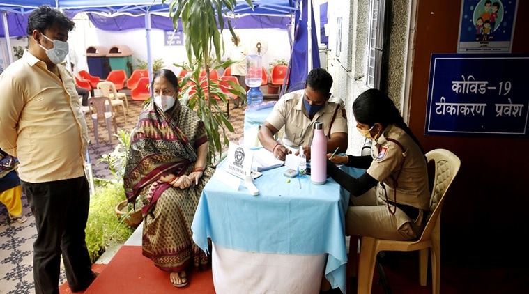 Vaccination for Covid-19 at a vaccination centre in New Delhi on Tuesday. (Express Photo by Praveen Khanna)
