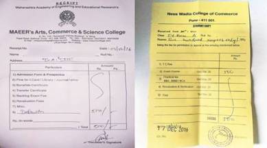 Pune Newsline also has receipts for the fees charged by the college.