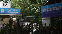 Boards announcing the Telangana Bhavan and Andhra Bhavan have come up on either side of the main entrance to the building complex on Ashoka Road. Its canteen, a city landmark where a chair is hard to find during lunch hour, has gone the Hyderabad way, for now. Spared the division blushes, it will remain common to the two states.