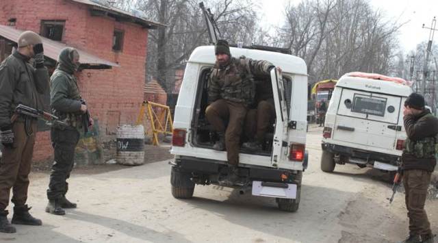 Army personnel in Hajin. A decapitated body of a youth was found in the city on Friday. (Express Photo/Shuaib Masoodi/File)