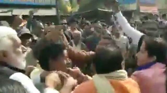 #WATCH Madhya Pradesh: A protestor pulls hair of Rajgarh Deputy Collector Priya Verma, after she hits BJP workers and drags them. The clash broke out during a demonstration in support of #CAA. pic.twitter.com/7ckpZaFBkJ