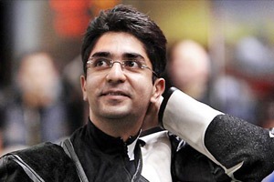 Beijing Olympic gold medallist Abhinav Bindra was the first Indian shooter to enter the London Olympic Games Village along with the 10-member archery squad and a four-member weight lifting squad,here.