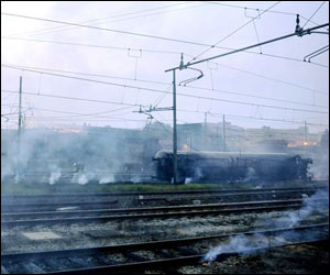 Emergency workers said flames engulfed a radius of 300 metres (yards),including five two-storey homes located along the railway.