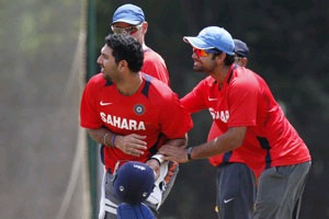 Seven Indian players led by senior pro Yuvraj Singh slogged it out at the IIT Chemplast ground on Wednesday,during an optional training session that lasted for two hours and 15 minutes. India will take on West Indies in their final group league encounter on Sunday. The home team who have seven points from five games will like to end the group league proceedings on a high before the real test starts. Also the fact that a defeat may create problems aplenty is something that Dhoni and Co will keep in mind. While seniors like skipper Mahendra Singh Dhoni,Sachin Tendulkar,Virender Sehwag,Gautam Gambhir,Zaheer Khan chose to remain indoors for the second successive day,the likes of Yuvraj along with Suresh Raina,Virat Kohli,Yusuf Pathan,R.Ashwin,Piyush Chawla and Munaf Patel had a serious session under the watchful eyes of coach Gary Kirsten and mental conditioning coach Paddy Upton. Kirsten was seen spending quality time with Virat Kohli and Yusuf Pathan-both of whom has had a tough time in the last couple of games. After all the batsmen had a decent knock at the nets,it was time for some throw-downs by Kirsten. Munaf also bowled for long time. Upton was also seen interacting with the players. All eyes will however be on local boy Ravichandran Ashwin who has not got a game till now. The Chepauk track which promises to offer a lot of turn may suit the lanky offie who knows the condition like the back of his hand. With Piyush Chawla putting up an ordinary show and the three-pacer theory backfiring in Nagpur during their loss to South Africa,the Indian crowd may get to watch Ashwin bowling his 'carrom balls' which he has used a lot during his successful stint with the Chennai Super Kings in IPL.