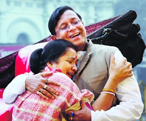 The acting cast takes away the top prize. Sabyasachi Chakrabortys Joy Sundar,Emma Browns Isabella,Debasree Roys Jhilik,Angana Boses Bela,the late Kunal Mitras matinee idol and Shaheb Chaterjees foul-mouthed,bitter start are brilliant illustrations of what acting should be. Shukno Lanka is Mithuns show all the way though his East Bengali dialect leaves room for improvement. He lives the role of Chinu Nandy who taught himself the lesson of coping and accepting what life has dealt out. His monologue with God is atypical of his character and reminds one of Deewar. Jhiliks breaking into a dance is another big glitch. The crowning glory comes when at the end of the ride,Mithun points out to a huge hoarding above Metro theatre in Kolkata of his forthcoming film to his wife. It carries a huge blow-up of his face. But the credits do not carry his name.