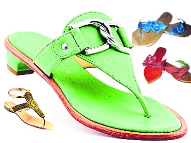 Weed out the towering chunky shoes from your wardrobe this aggressive summer. Thongs or strappy flip-flops with interesting toe-posts are what you need this season. From butterflies to polka dots, embellishments of all kinds are big this summer,say shoe designers Deepika Mehra of Vanilla Moon and Swati Mehrotra of Swatimodo. The summer look needs a design thats edgy and thongs definitely capture the cool flirty spirit, says Mehrotra. Swati Modos light-weight thongs are made from cotton or silk come with polka dot patterns or with dainty roses across the length of the thong. It is all about bright colours for the feet. Earth tones are out this summer. A yellow mustard tone or bright red is in. Silver and aqua shades also make for some fun dressing, says Mehrotra. Team your funky flip-flops with short dresses,knee-length skirts or skinny pants.