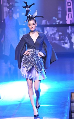 This collection shown at IIFA pushes Bahl further towards the debit side. Not because it is short on style or showstopper appeal,but because it is such an unoriginal initiative to create garments to suit a booze sponsor’s merchandisein this case an array of Vodka varieties. Sample some: Grey Goose Spice,inspired by Mumbai; Lavender Bliss inspired by Tokyo,Amour inspired by Paris and Fiesta Espanola inspired by Madrid.