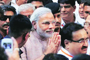 Sources said the BJP brass went into a huddle last night after indications that the dozen-odd delegates from Gujarat would boycott the meet along with Modi. There were reports that Modi had threatened to quit the national executive if Joshi stayed on.