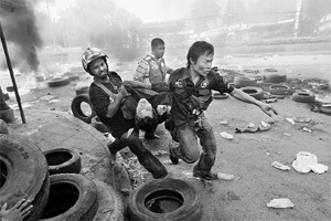 Because of the fear of snipers,a photographer said,two dead or wounded victims lay for a long period in a street unattended. The military was not allowing ambulances to pass a roadblock,the photographer said,which meant that rescue workers had to run at a crouch with stretchers to carry out the victims.