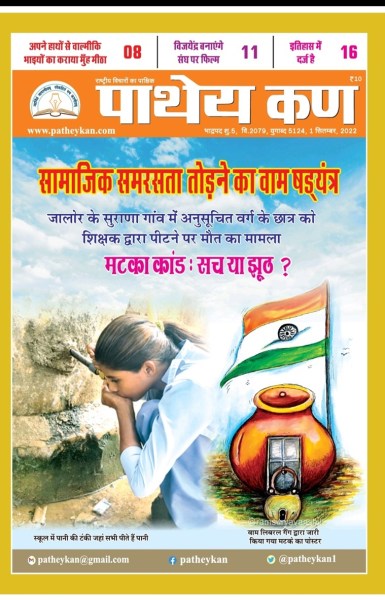 In its cover story of the same name, authored by Ramswaroop Agrawal, the editor of Pathey Kan, a blurb says, “Samaj se vilupt ho gayi chuachoot ko phir se jeevit karne ke liye, ‘samaj todak gang’ dwara kiya gaya matki ka avishkar? (Did the ‘society-breaking gang’ invent the water pot to bring back to life untouchability, that has already been eradicated from the society)?”