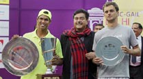 Just as the lights came flickering on at the RK Khanna stadium, Devvarman held serve to claim the title, winning the final point in characteristic fashion. Devvarman was scampering to keep the ball in play and was perhaps out of position, but Nedovyesov pulled his attempted winner long to put an end to his misery. The final had lasted under an hour.