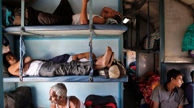 As a punishment, the offending passenger, identified only as Ramchandra, was made to stay awake five to six hours by fellow travellers so that they could sleep. (AP Photo/ Rajesh Kumar Singh)