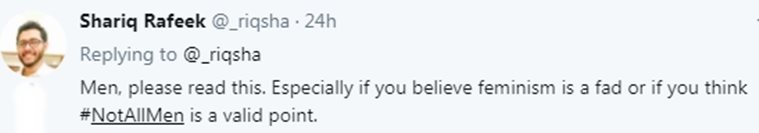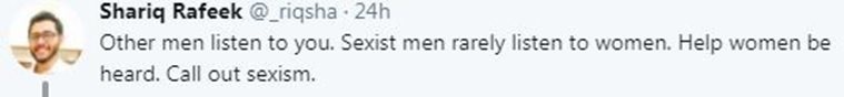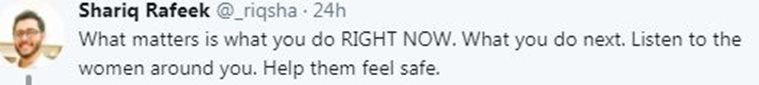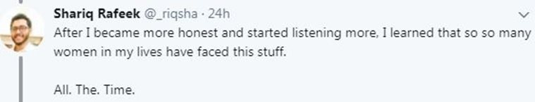 He is, thus, through his Twitter thread, urging other men to do the same. “What matters is what you do RIGHT NOW. What you do next. Listen to the women around you. Help them feel safe,” he wrote.