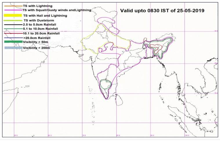 Telangana, East Madhya Pradesh, Chhattisgarh, East Uttar Pradesh, Jharkhand and Odisha during next 4-5 days. Strong surface winds (speed reaching 20-30 kmph) are to very likely over parts of south Haryana & Delhi, north Rajasthan, northwest Madhya Pradesh and West Uttar Pradesh during next 24 hours. (IMD)