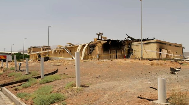 This photo released Thursday, July 2, 2020, by the Atomic Energy Organization of Iran shows a building after it was damaged by a fire at the Natanz uranium enrichment facility, some 200 miles (322 kilometers) south of the capital Tehran, Iran. Iran on Sunday confirmed that a damaged building at the underground Natanz nuclear site was a new centrifuge assembly center, the official IRNA news agency reported. (Atomic Energy Organization of Iran via AP, File)