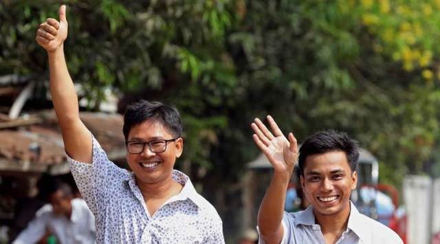 The two reporters, Wa Lone, 33, and Kyaw Soe Oo, 29, had been convicted in September and sentenced to seven years in jail, in a case that raised questions about Myanmar’s progress toward democracy and sparked an outcry from diplomats and human rights advocates.