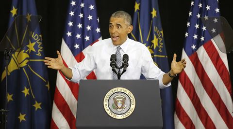 President Barack Obama gestures while speaking at Concord Community High School Wednesday, June 1, 2016, in Elkhart, Ind. (AP Photo/Charles Rex Arbogast)